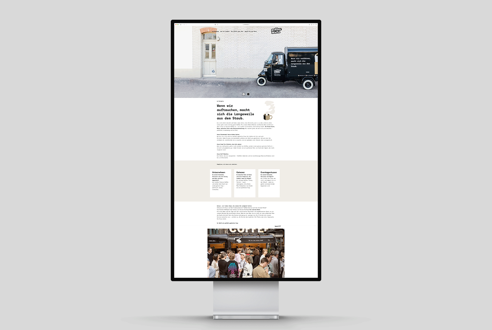 Coffee Mafia, Switzerland’s first and only mobile barista service, unveils a fresh, bold rebranding. The new identity embraces the unique mafia concept, incorporating this captivating theme across all aspects of the brand. From visual identity to communication, the rebellious charm of the brand is amplified, highlighting the unconventional and exciting nature of the service. Coffee Mafia remains the original mobile barista service for B2B – now with an even more distinctive and unmistakable presence.