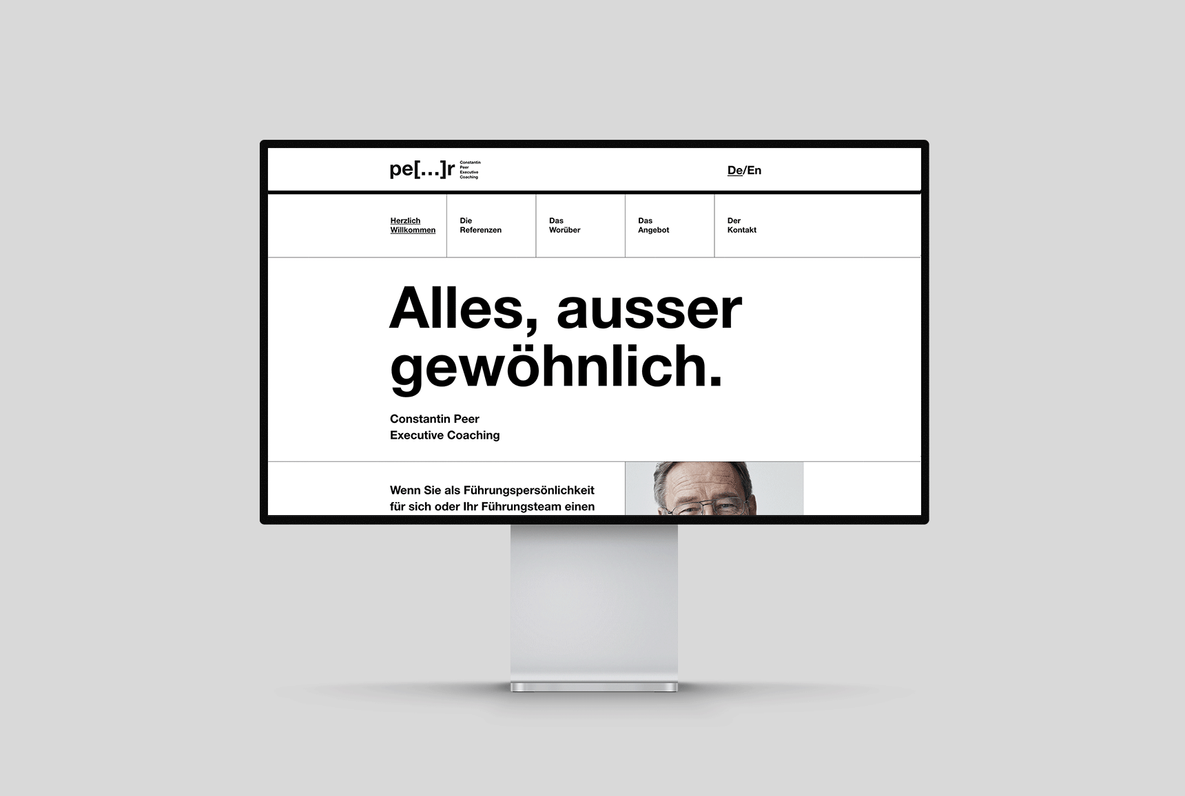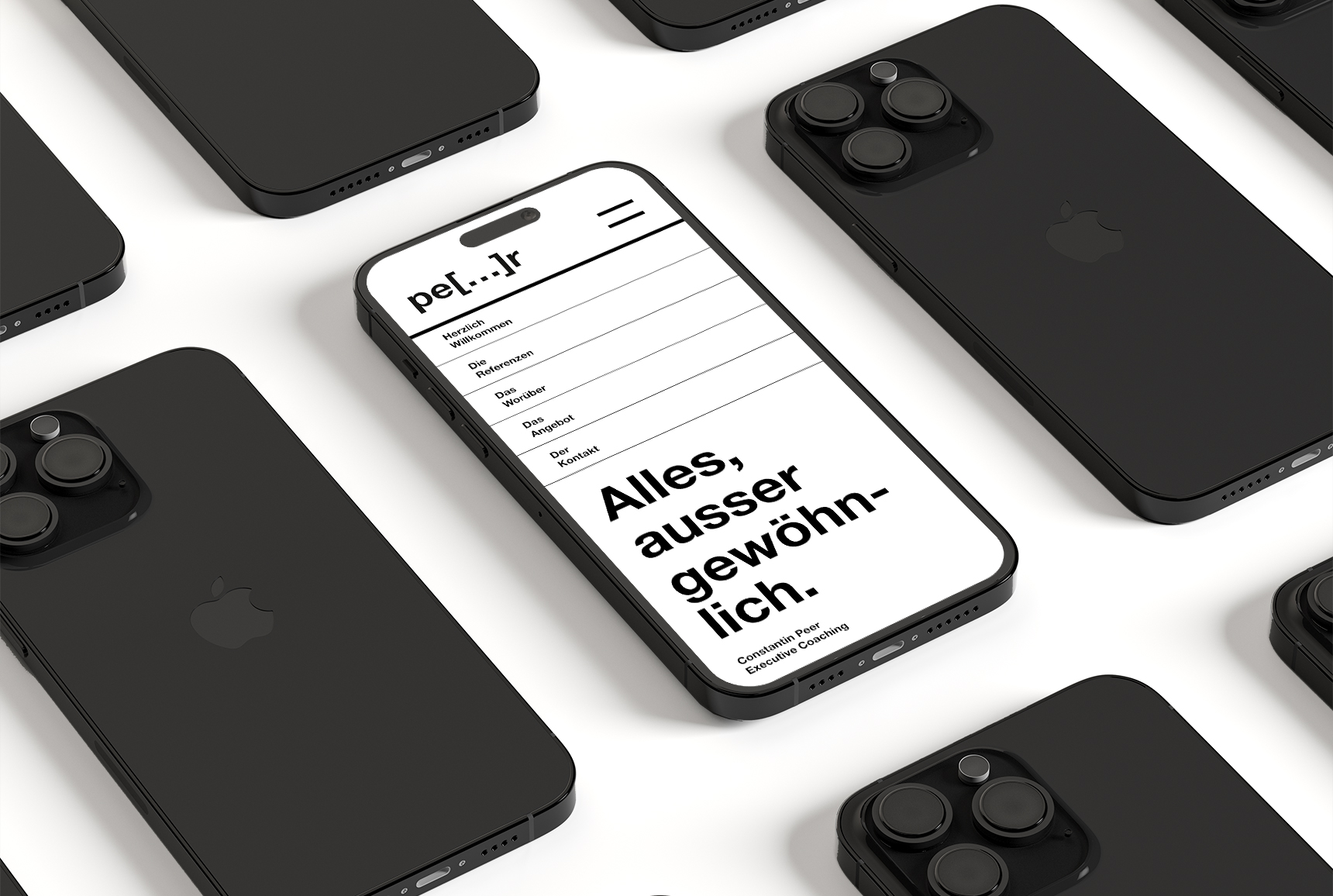 Ein markanter, aber zurückhaltender Auftritt, der den hohen Ansprüchen eines erfahrenen Coaches gerecht wird. Peer Executive Consulting setzt auf Klarheit und Einfachheit, um sich aus der Masse der Wettbewerber hervorzuheben und gleichzeitig seine Expertise und Professionalität zu unterstreichen. Der Fokus liegt darauf, eine Marke zu schaffen, die sowohl Vertrauen erweckt als auch durch ihre Schlichtheit und Klarheit besticht.