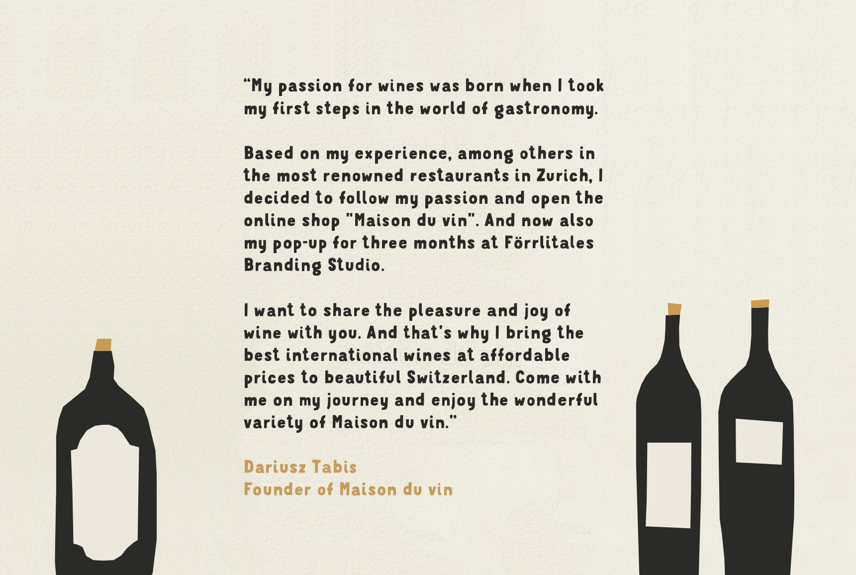 Die Marke Maison du Vin repräsentiert erlesene Weine, die mit Leidenschaft und Expertise ausgewählt wurden. Zur Markteinführung wurde ein einzigartiges Pop-Up-Erlebnis geschaffen, das die Gäste in die Welt des Weins entführt. Begleitet von einem durchdachten Lancierungskonzept und gezielten Massnahmen während der Eröffnungsfeier wurde eine Atmosphäre geschaffen, die sowohl die Qualität der Weine als auch das besondere Markenerlebnis unterstreicht.