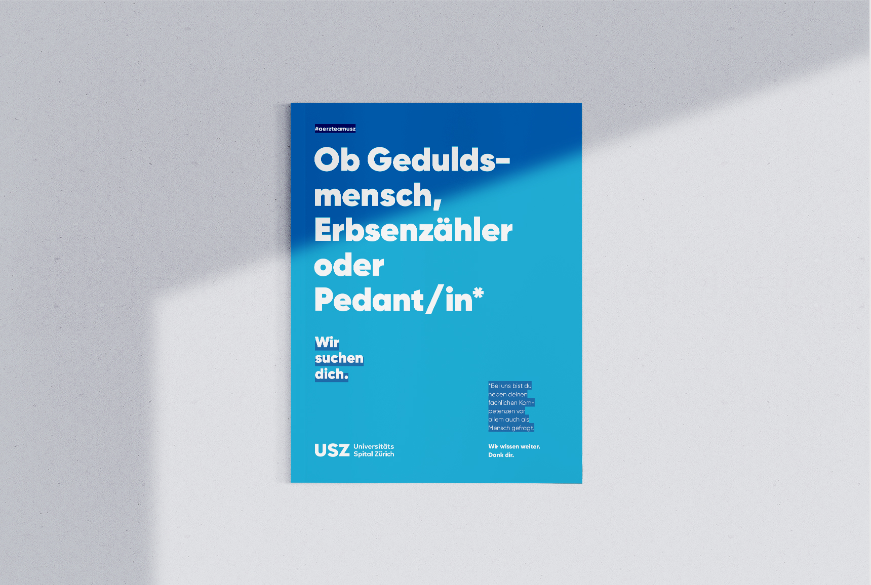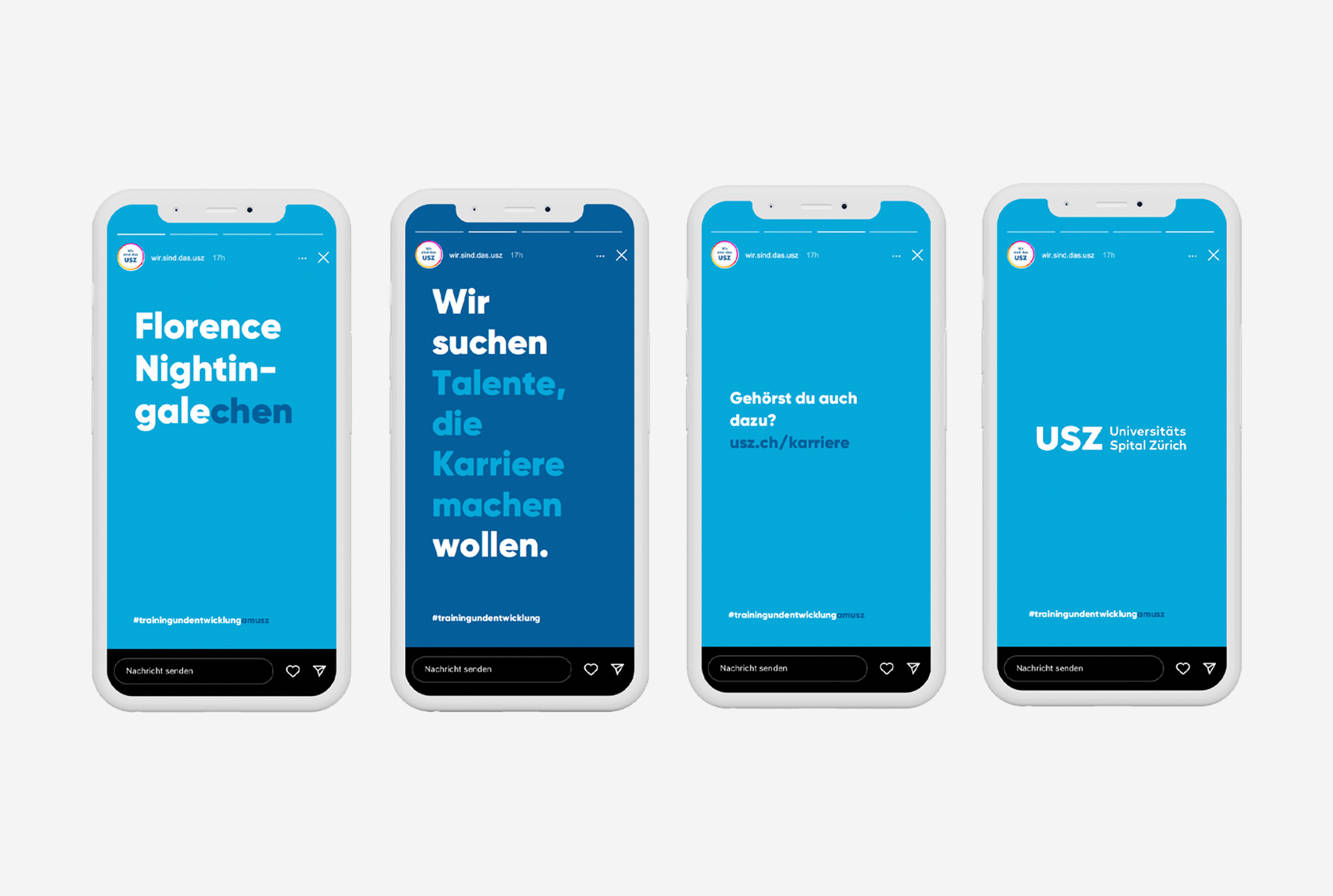Ein modernes und authentisches Employer Branding, das die Exzellenz des Universitätsspitals Zürich widerspiegelt: Mit einer klaren Social Media-Idee, kreativen Werbekampagnen und einem eindrucksvollen Messeauftritt zeigen wir, was das USZ als Arbeitgeber einzigartig macht.