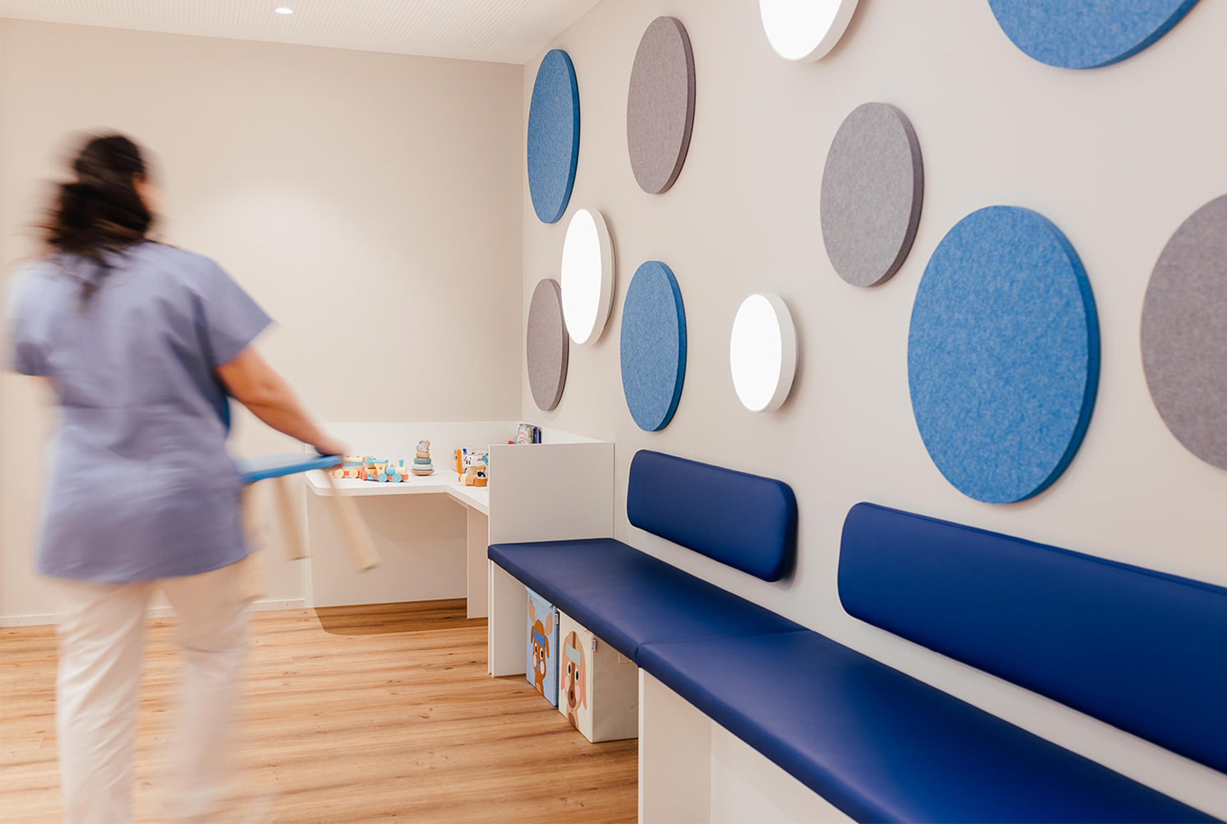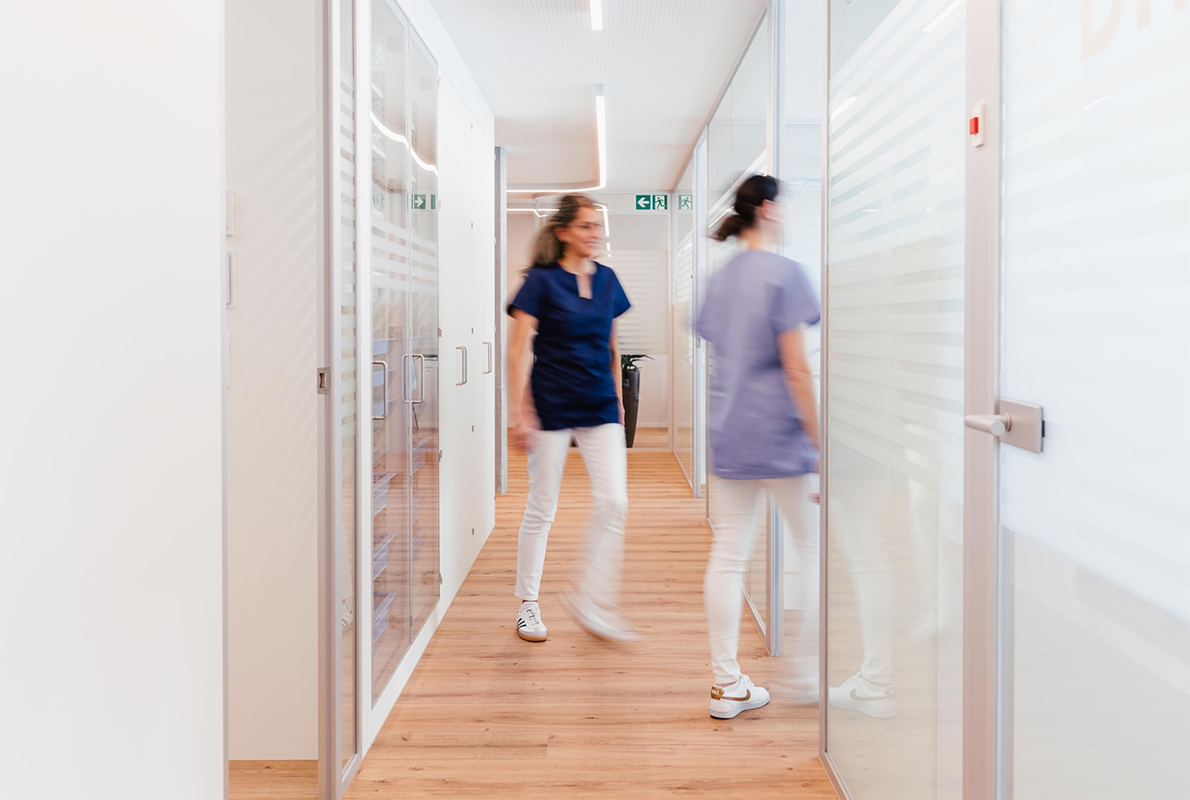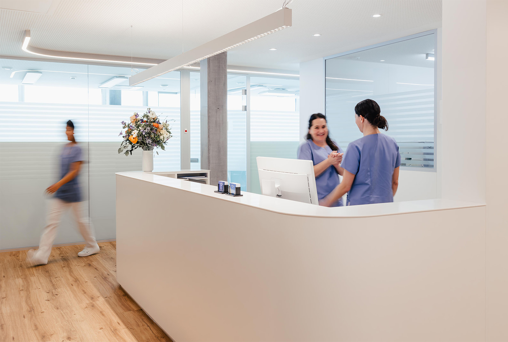 Das Design überrascht mit kräftigen Farben, die eine energiegeladene und unerwartete Welt schaffen – weit entfernt von der sterilen Ästhetik klassischer Zahnarztpraxen. Für jede der beiden Schwestern wurde eine eigene Farbwelt entwickelt, die ihre Persönlichkeit widerspiegelt. Zusammen verschmelzen sie zu einem markanten Gesamtauftritt, der Kompetenz, Herzlichkeit und Modernität ausstrahlt. Ganz nach dem Motto: «Mit einem Lächeln kommen, mit einem Strahlen gehen.» Die Neugestaltung schafft ein Umfeld, das Patientinnen und Patienten mit einer positiven Atmosphäre empfängt und ihnen das gute Gefühl gibt, in den besten Händen zu sein.